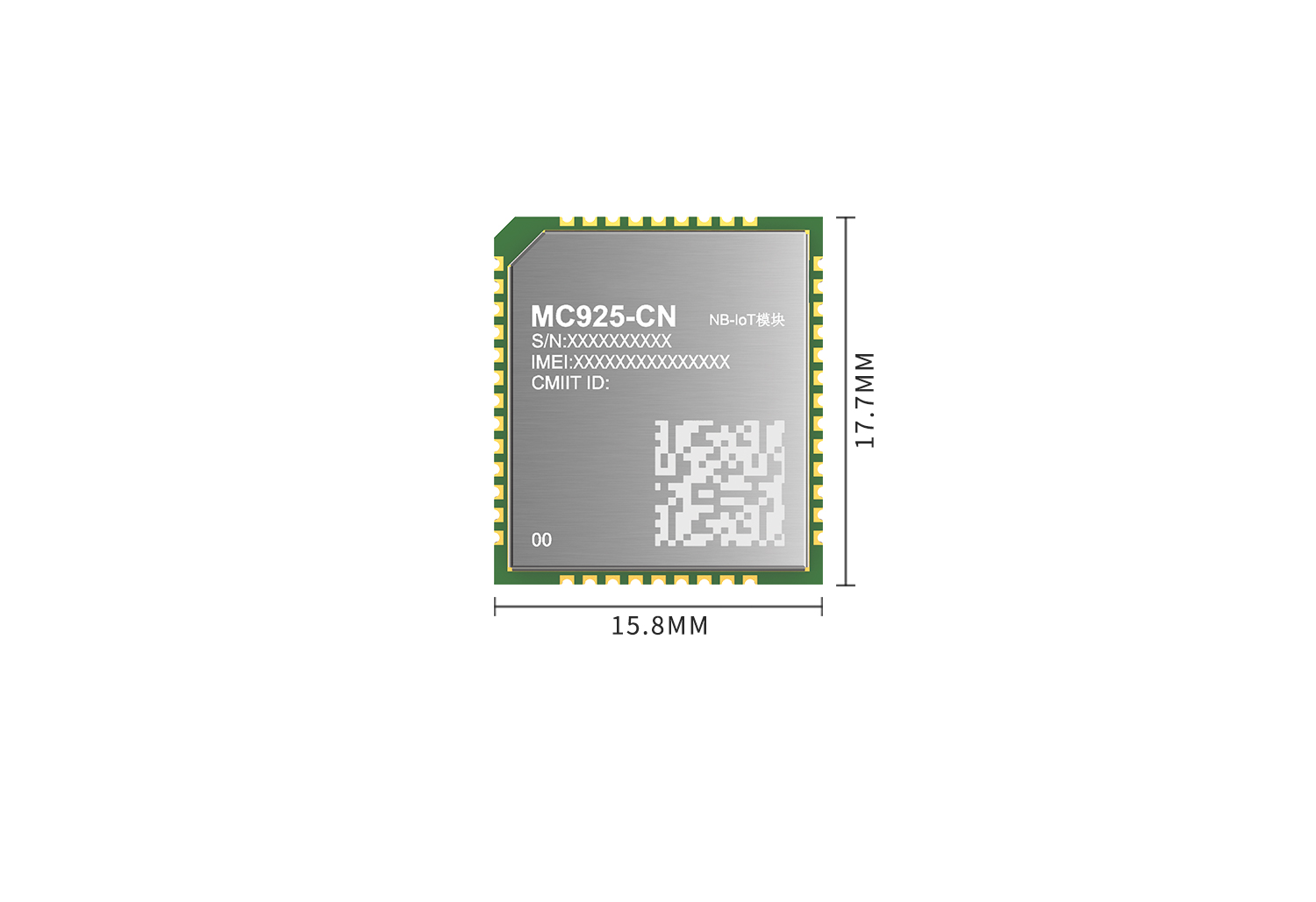 NB-IOT模組:MC927-CN(Cat NB2:B3/5/8) NB-IoT模組MC927-CN是針對中國推出的低功耗、純數傳以及高性價比的 LTE Cat NB2 無線通信模組,支持B3/5/8頻段,采用LCC封裝,尺寸為18.0mm*16.0mm*2.2mm。 more >